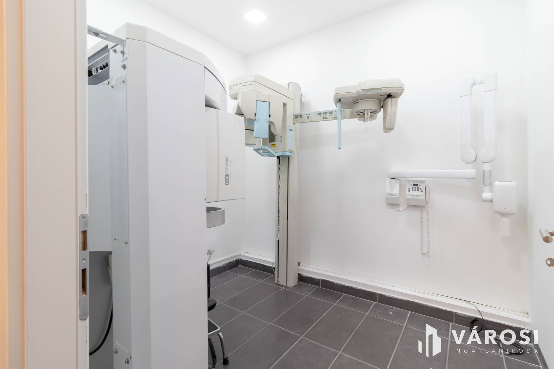 Rendelkezésre áll a további 5 rendelővel közös használatú sterilizáló helyiség, röntgen helyiség, valamint személyzeti öltöző és teakonyha.