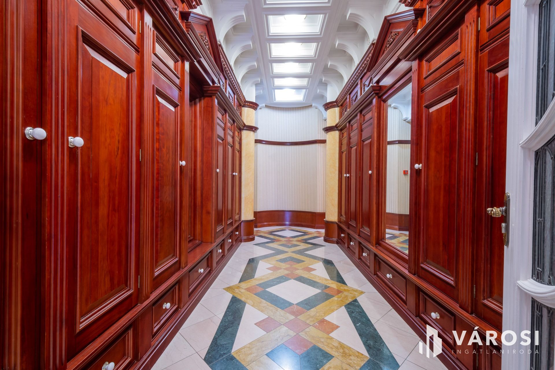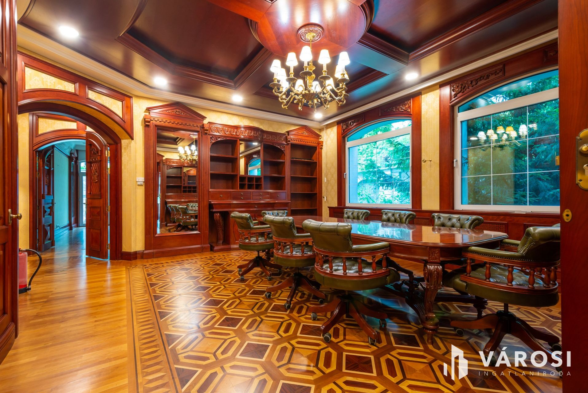 Az intarziás parketták, a márvány burkolatok, a kazettás mennyezetek, a tömörfa, koronás ajtók és fafaragásokkal díszített beépített bútorok, az ólomüveg betétek, az exkluzív tapéták, az egyedi csillárok mind-mind a legmagasabb luxus minőségében készültek.