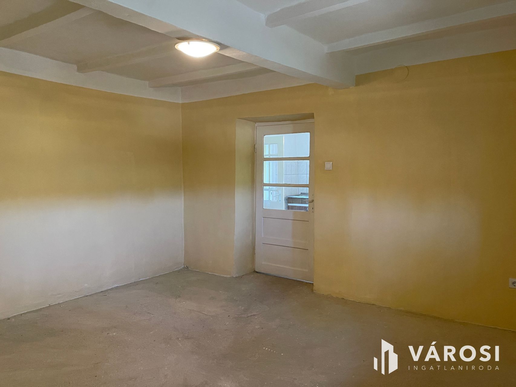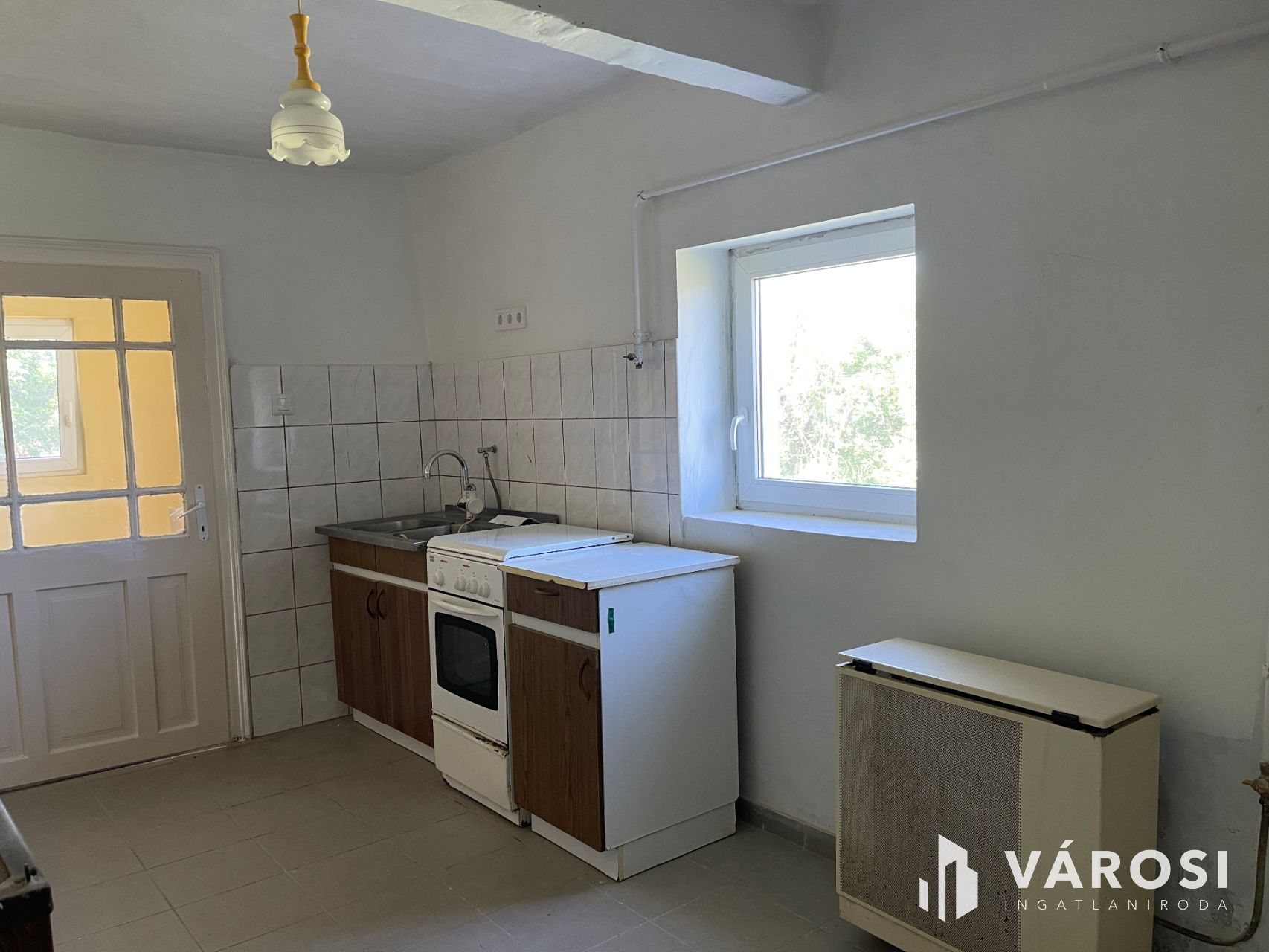 A 60 m2-es házat jelenlegi elosztás szerint egy szoba, konyha, kamra, fürdőszoba és közlekedő alkotja. Viszont az elrendezése lehetővé teszi, hogy praktikusan átalakítható legyen. Így kihozható belőle 2 szoba is és a hosszú széles közlekedő akár egy nappali-konyhaként is szolgálhat. De ha valakinek így ideális, azonnal költözhető, hiszen frissen van festve kívül-belül. Minden helység betonozott, és mindenhol műanyag nyílászárók vannak. Fűtését gázkonvektorok biztosítják és ezen kívül még a mostani konyhában egy cserépkályha is működik. A víz, gáz, villany mellett a csatorna rendszer is kiépítésre került az udvarig.