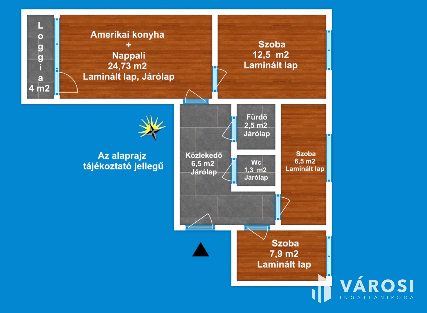 A lakás 1 db amerikai konyhás nappalival, 3 db hálószobával, 1 db fürdőszobával, külön Wc-vel, közlekedővel, előtéttel rendelkezik. Az ingatlan elhelyezkedésre, kialakítása miatt rendkívül sokrétű a felhasználása - akár lakás, vagy befektetési célra -, amely maximálisan kiemeli ezt az ingatlant az átlagos lakások sorából és egyedülálló választássá teszi azt.