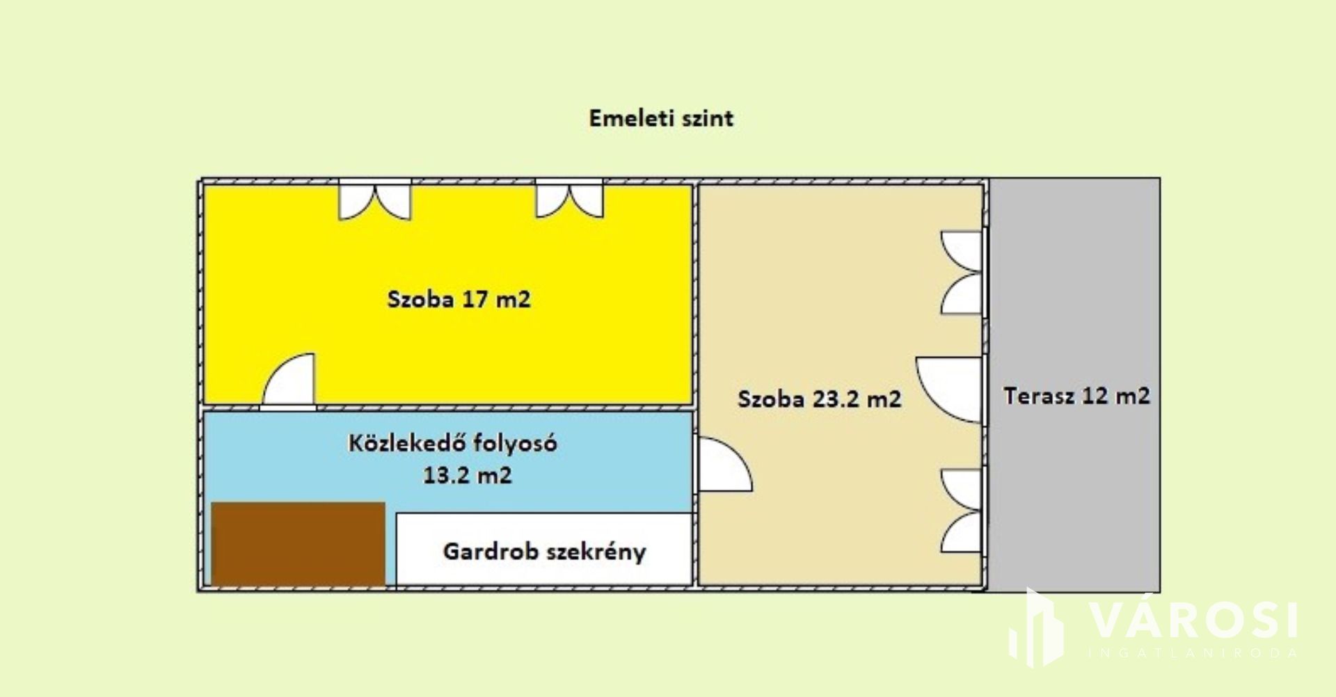 - Legfelső szinten egy hálószoba, galériás félszobával, valamint fürdőszoba és WC.