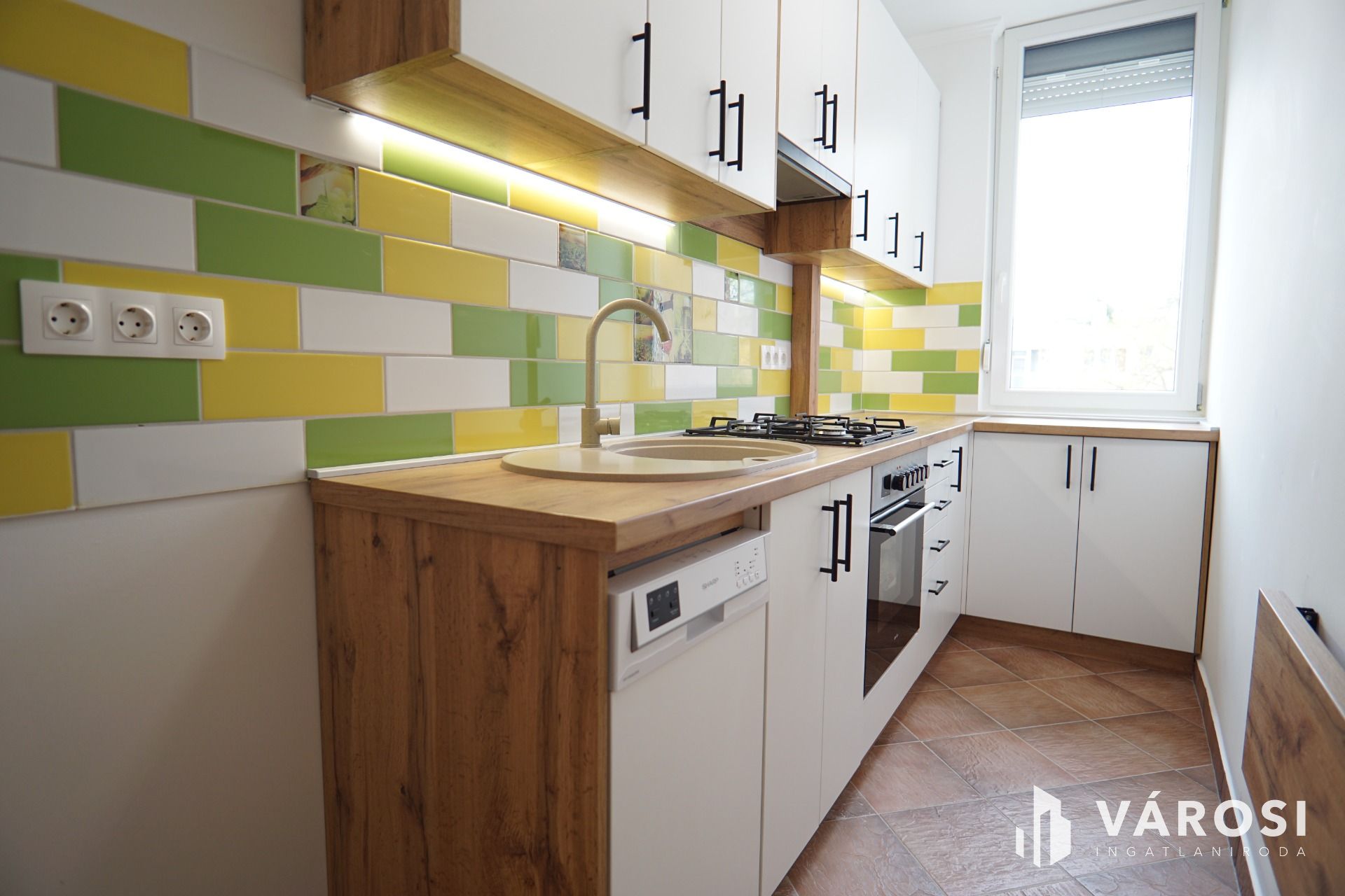 - új konyhabútor beépítése, (Gépesítés: mosogatógép, elszívó, tűzhely, főzőlap.)