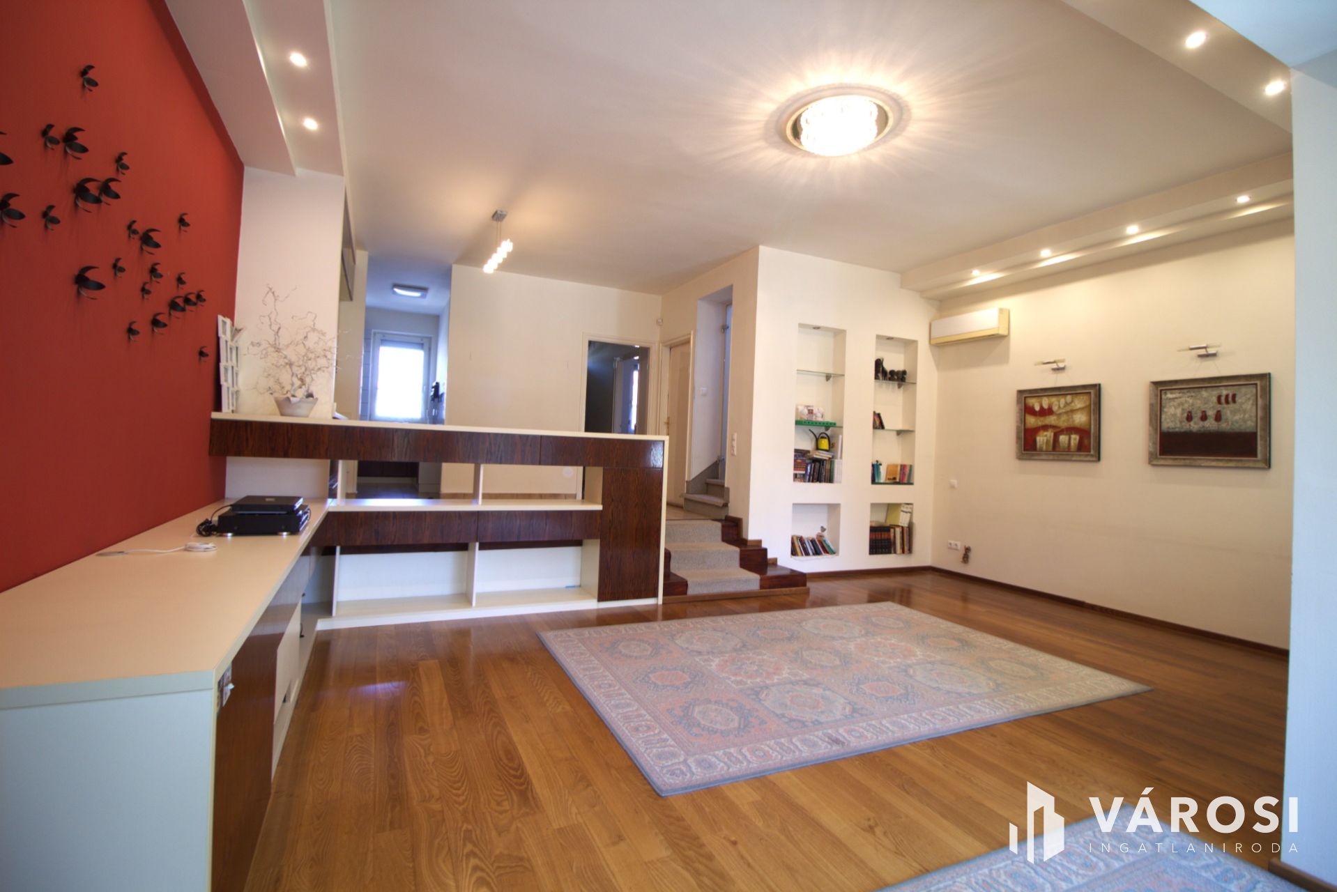 A háromszintes, 204 m² összterületű ingatlan tágas és átgondolt elrendezésével ideális választás azok számára, akik a kertvárosi nyugalmat és a nagyvonalú élettereket keresik. Az otthon központi tere a világos nappali–étkező, amely közvetlen kapcsolatban áll a kertre nyíló hangulatos terasszal, így a beltéri és kültéri élettér harmonikusan kapcsolódik össze.