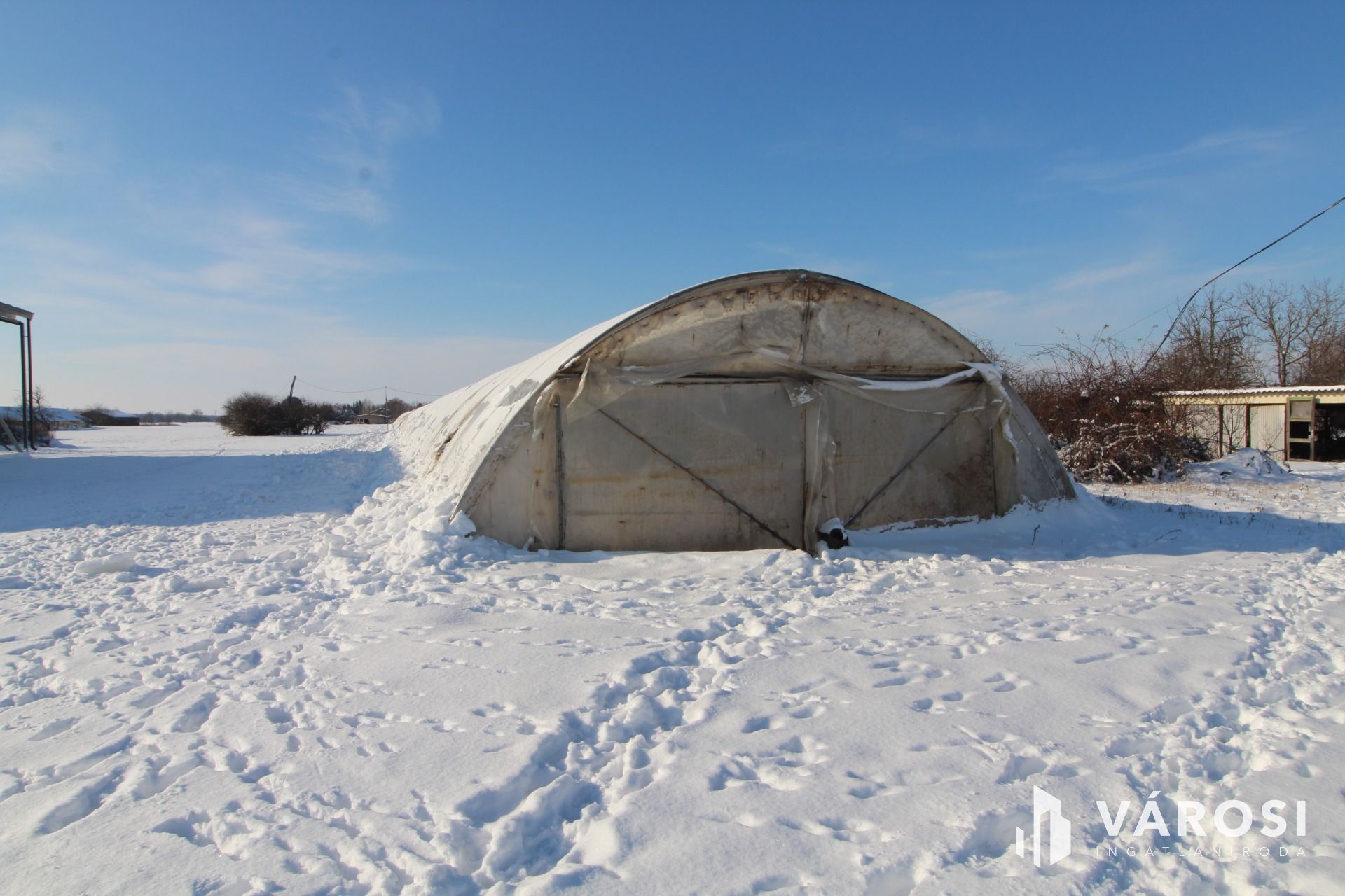 A területen 7 méter széles és 168 méter hosszú fóliasátor van.