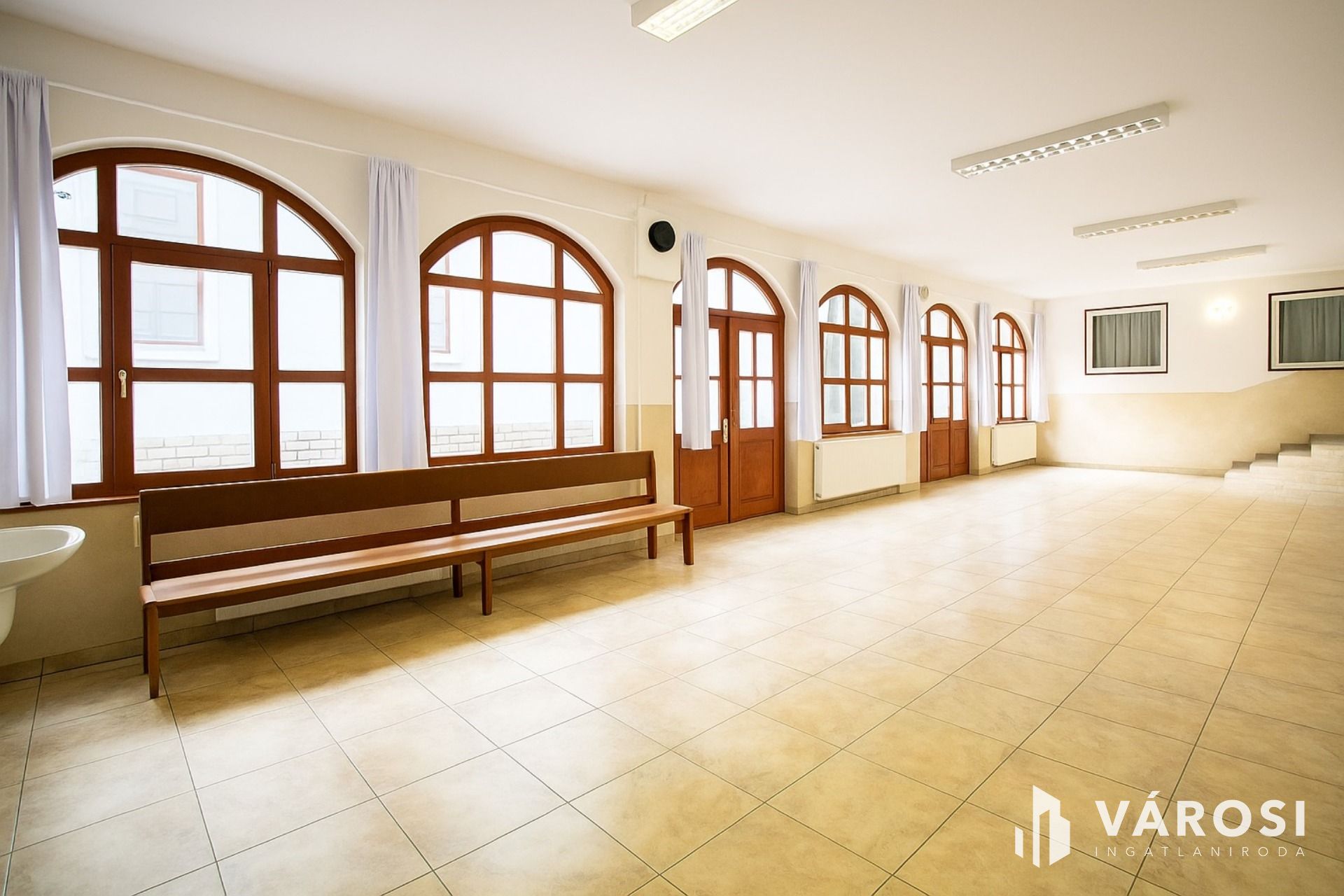 A 6,8 méteres belmagasság, a 10 egyedileg tervezett, dupla üvegű ablak és a tágas tér igazi karaktert ad az épületnek.