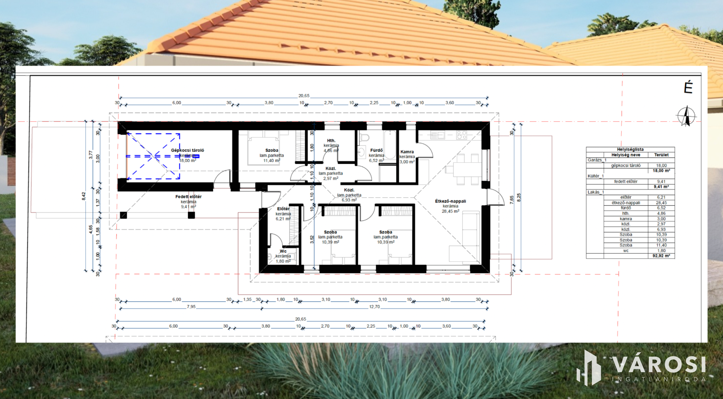 + Lakótér összesen: 92,92 m2