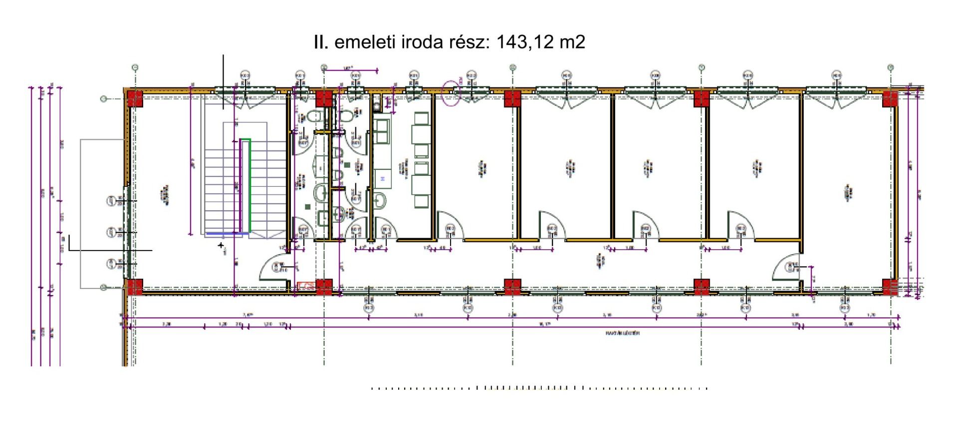 Az ipari létesítmény földszintjén helyezkedik el a termelői rész, a raktárcsarnok, valamint az irodai és szociális helyiségek (öltöző, kézmosó, férfi és női WC, zuhanyzók és teakonyha).